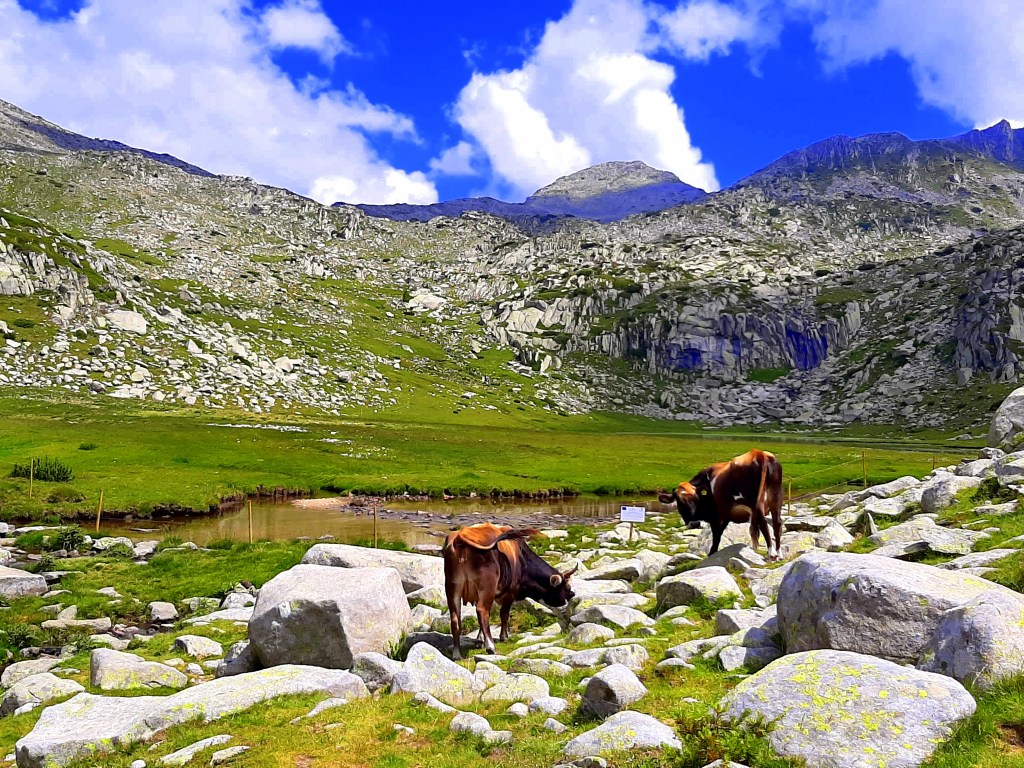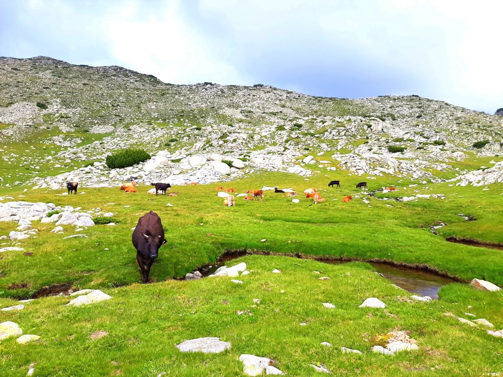 По-нататък се натъкнахме на още много стада. Минавахме спокойно, като се старахме да не ги притесняваме. Бяхме прочели, че не бива да ги гледаме в очите, за да не се разярят. Така и направихме и нямаше произшествия. Малко ме притесниха лаещите кучета пазачи, но заобиколихме така, че да не минаваме точно покрай тях. Собственичката на хотела, в който бяхме отседнали, впоследствие ми разказа, че въпросните кучета веднъж нахапали един планинар, така че страхът ми определено е бил основателен. Но планината разполага с достатъчно място за всички – хора, крави, кучета. А също и за малките сладки сърни, на които също помахахме по-нататък по пътя.
