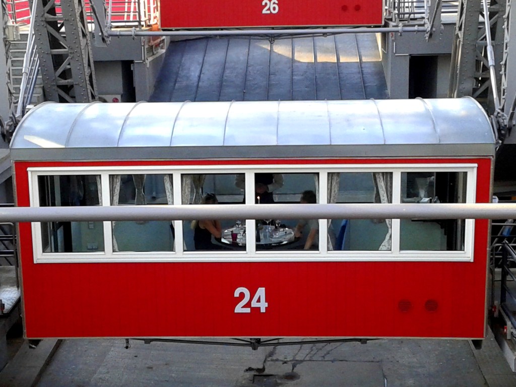 Това, което не ми допадна, бе че кабинките (т.нар гондоли) са изцяло затворени, а и се налага да ги делиш с множество хора. Интересна алтернатива са двете самостоятелни гондоли, които могат да се наемат за романтична вечеря например. Да наблюдавам влюбената двойка в една от тях, беше сред най-интересните неща в цялото изживяване.