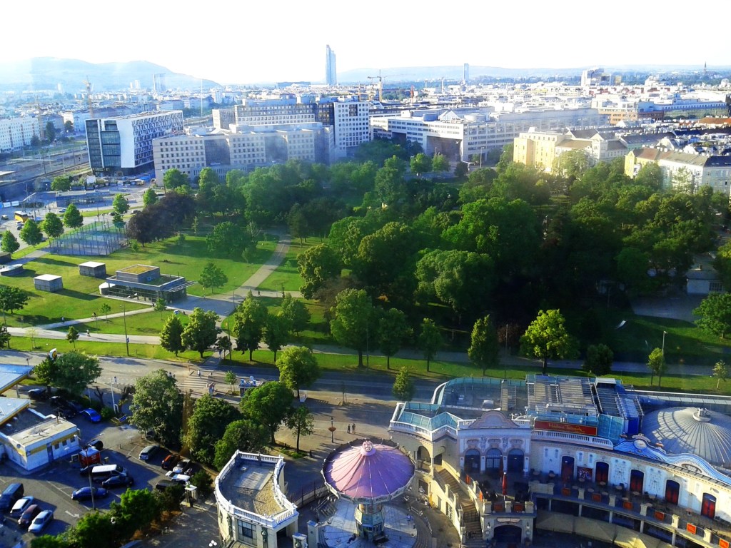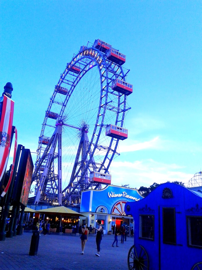 Преди около 3 години посетих Виена за един вълшебен ден, в който се постарах да попия възможно най-много от прелестта й. Затова и една от основните ми дестинации бе увеселителният парк „Вурстелпратер“, разположен в огромния градски парк „Пратер“. Първата атракция, към която побегнах, бе именно Голямото Виенско колело. За да бъда честна, ще си призная, че не бях възхитена. Може би причината се крие и в това, че бях там през деня – всички останали колела, за които ще ви разкажа, посетих вечер. Височината му е 64 м и от него се разкриват величествени гледки към цяла Виена.