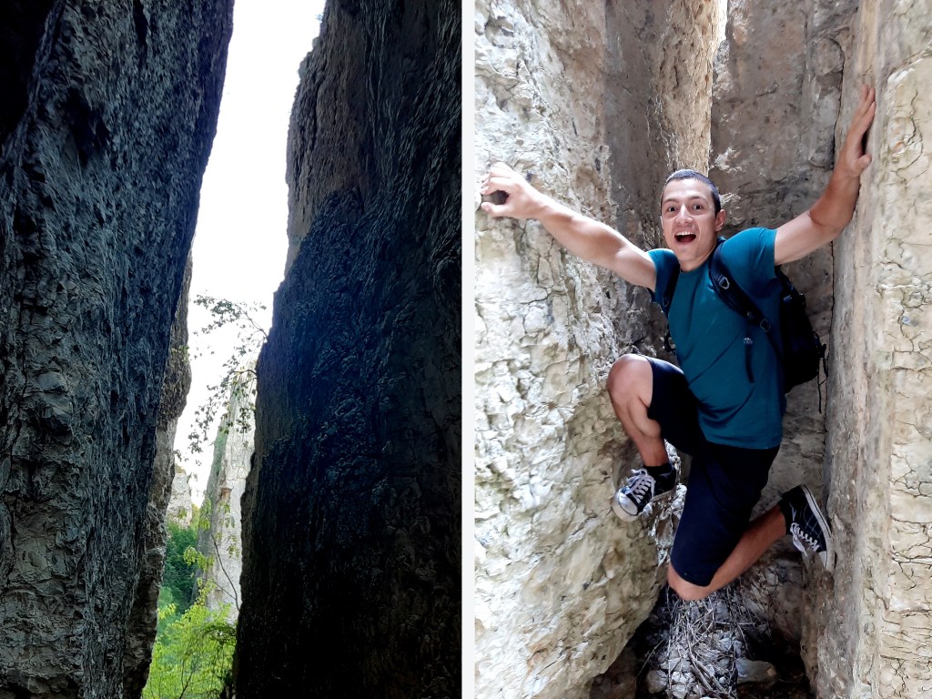 Следващото препятствие по пътя никак не се забави. Непосредствено след пещерата достигнахме много стръмен и тесен участък – но и кратък. Част от групата предпочете малко по-заобиколна и полегата пътека. А екстремистите като мен веднага се втурнахме към изправилото ни се предизвикателство, за да почувстваме всяка силна емоция, която каньонът можеше да ни поднесе.