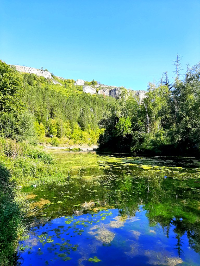 Първата ни дестинация бе село Реселец (община Червен бряг), от което бързо стигнахме и до обозначителната табела за екопътеката „Тектонски гребен Калето“, която още наричат каньон Пропадалото. Пред нея се простираше огромно блато, отразяващо чистото небе и зеленината наоколо, а над него се извисяваха варовиковите скални образувания, които скоро щяхме да погледнем отблизо. Имаше и чешма, от която се презапасихме с ледена вода.