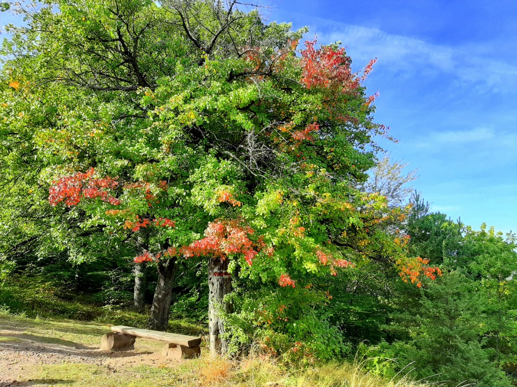 След манастира минахме покрай ябълково дърво с пейка под него. Това беше моментът, в който най-трудно открихме правилния път. Тук не бива да продължава напред, а леко вляво и нагоре. Скоро ще видите и указателна табела.