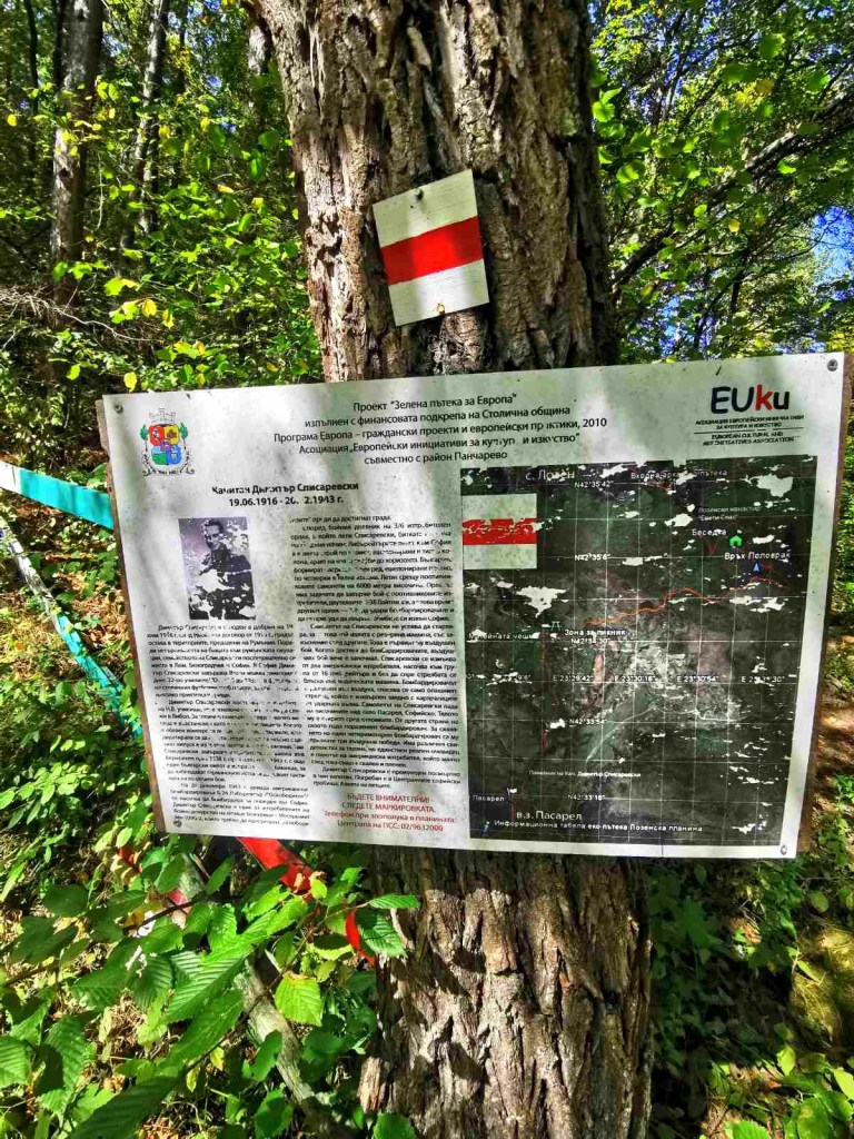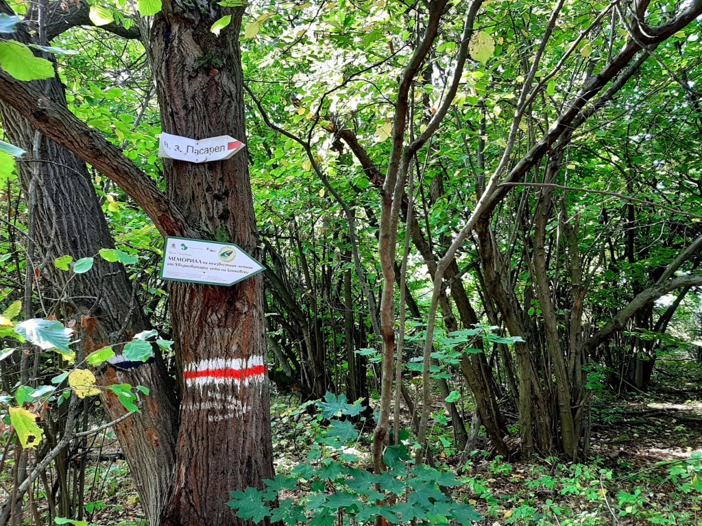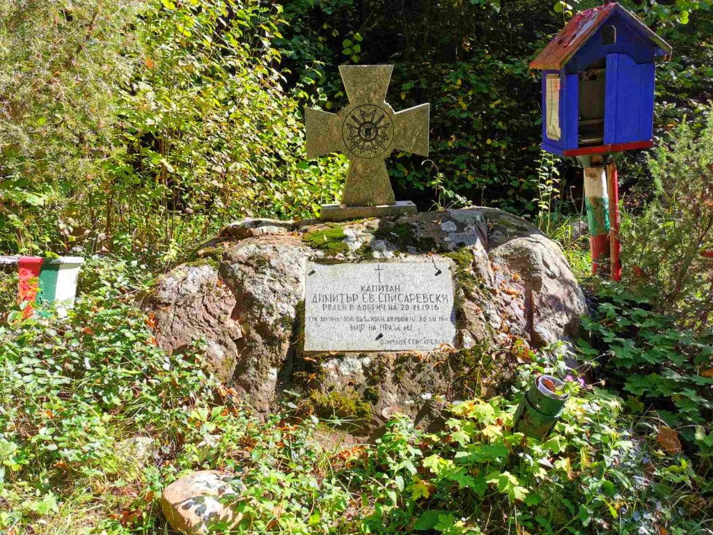 Част от компанията ни беше дошла с кола, която паркираха в село Лозен. Затова и малко след „Зоната за пикник“ решиха да се връщат назад. Така и са се натъкнали на правилното продължение на екопътеката. Тя ги е отвела до още две забележителности на местността. Първата – мемориалът на българския летец капитан Димитър Списаревски, проявил смелостта си по време на бомбардировките над София, когато се врязва във вражески самолет, а отломките на самолета му падат точно тук в гората.