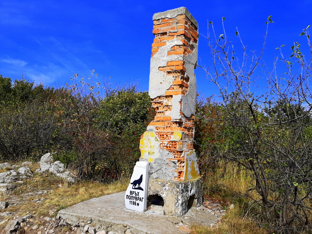 След като заобиколите бялата ограда на мемориалния комплекс, след миг вече ще сте на връх Половрак. Най-напред ще видите нестандартна конструкция, наподобяваща комин. На нея е облегната мраморна плоча с името на върха. На нея то е изписано като Полувраг – според мен преиначено заради полувраговете на четника, които, първо, са го хранили, но после са ги предали.