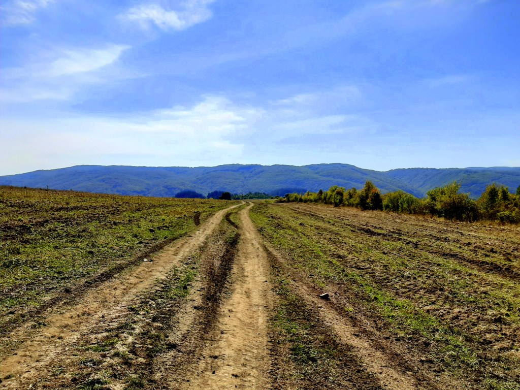 GPS-ът и картата на табелата показваха да продължим наляво по перпендикулярния на пътеката, от която идвахме, път. Така се озовахме на краткия път към селото, който се отклоняваше от екопътеката „Лозенска планина“.