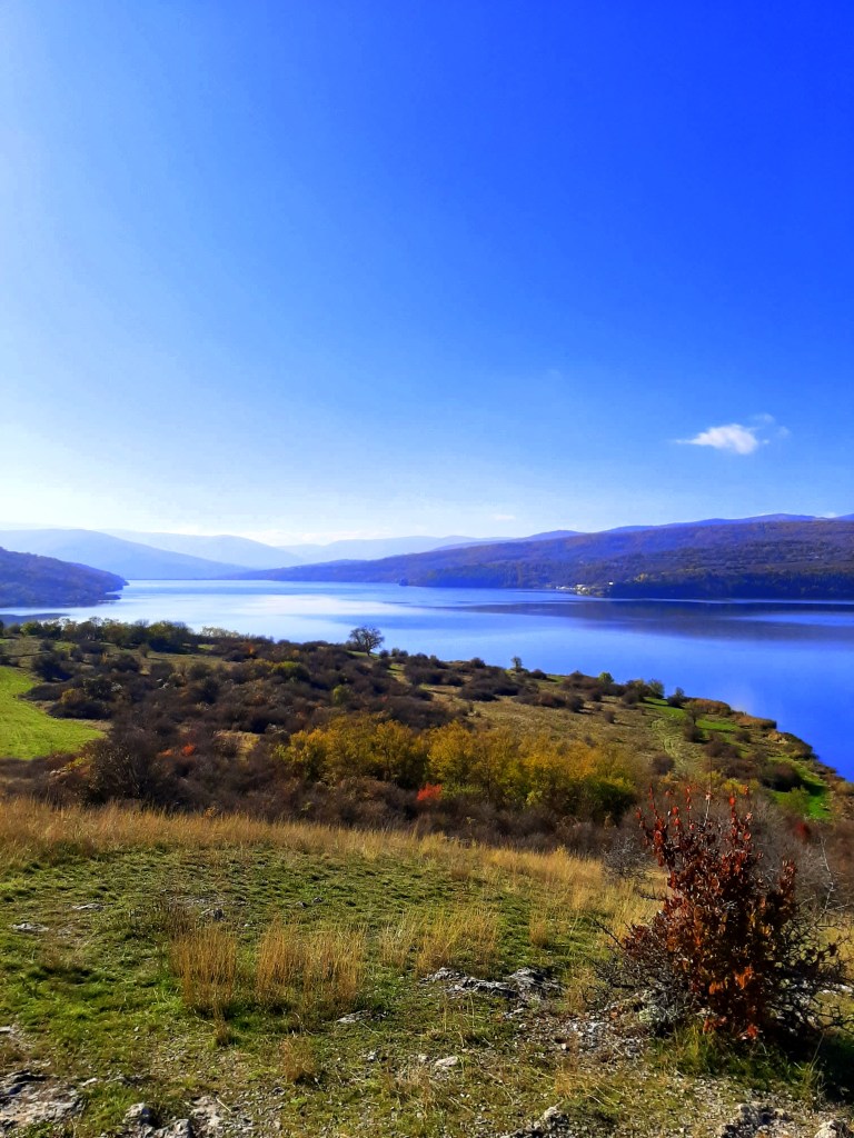 Но преди да му обърна заслуженото внимание, спрях на място, за да съзерцавам безмълвна в синевата пред себе си. Започнах да се въртя като пумпал, за да успея да обхвана с очи всяко прелестно кътче около себе си, но все не ми стигаше. Язовирът е с площ от 5,38 кв. м, но на мен ми се стори безкраен!