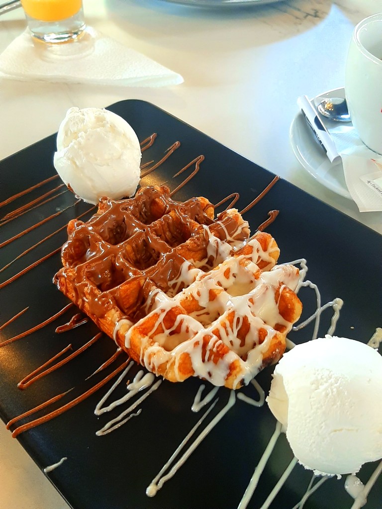 Закуска – кафе „Флора“ – похапнах супер сладка и хрупкава гофрета. И менюто им с чайчета не е за подминаване. Впечатление ми направи, че по главната улица има много наподобяващи на това кафенета, така че предполагам, че повечето от тях са подходящи поне за по чаша ароматно кафе.