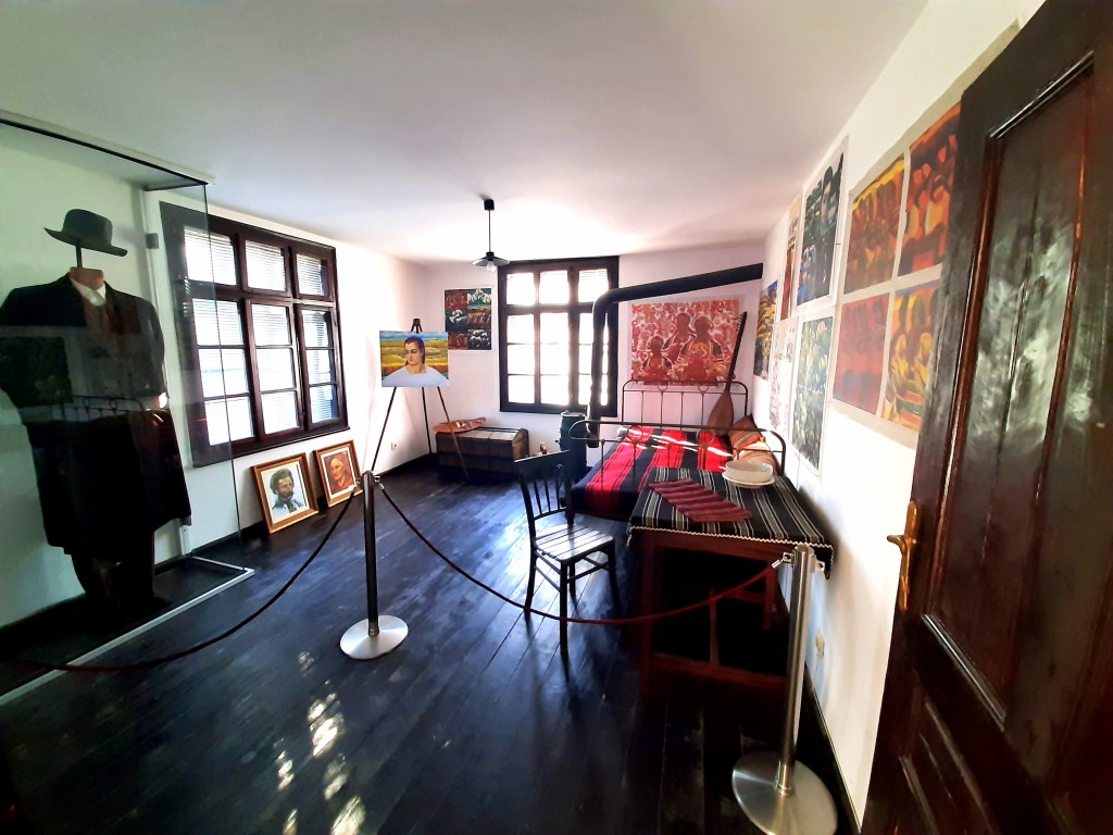 Село Шишковци се намира на 6 км североизточно от Кюстендил. До него можете да отидете и с влак (същото важи и за Кюстендил). Според Уикипедия населението му е малко над 500 души. Улиците бяха приказно спокойни и някак уютни. А дестинацията ни – къщата-музей „Владимир Димитров-Майстора“ бе заключена. На огромната дървена порта имаше табелка с телефон, на който да позвъним. „Стопаните“ бързо се отзоваха и след 5-10 минути бяхме вътре. Бяхме големи късметлии, защото, когато пристигнахме, нямаше никого, а докато ни отворят, зад нас се бе оформила дълга опашка.