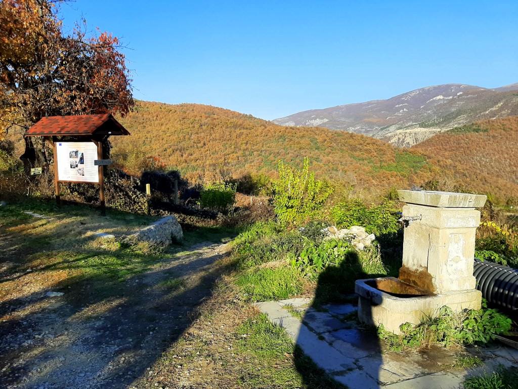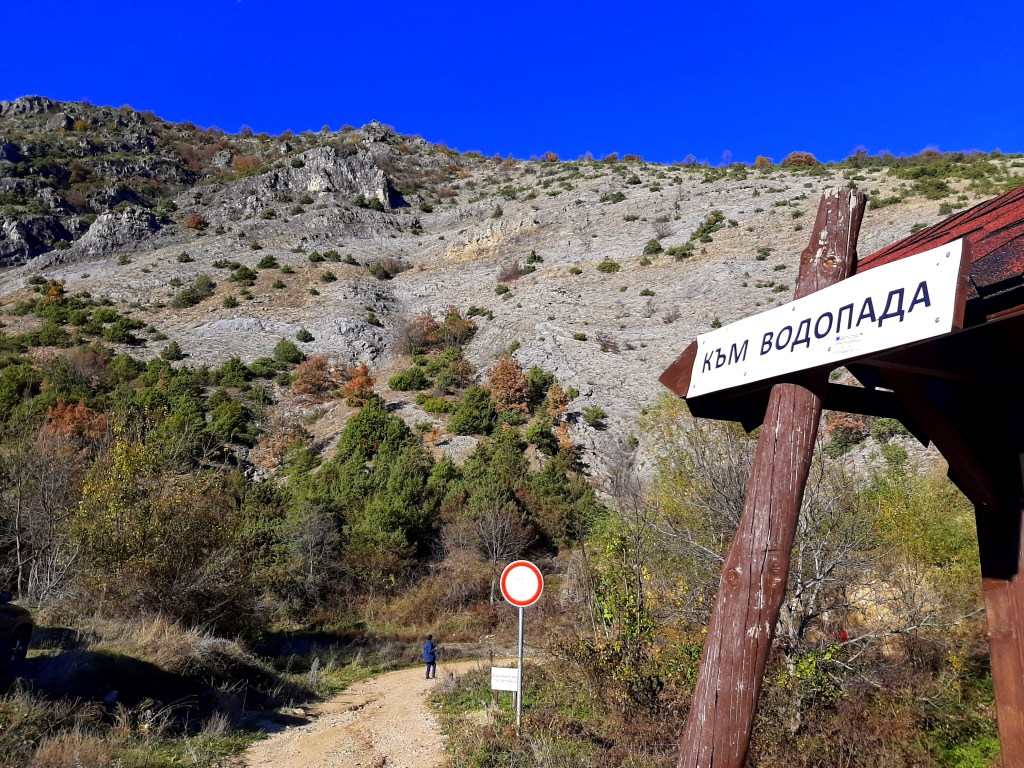 За да стигнем до църквата „Свети Димитър“, разположена на хълма над водопада, трябваше да се върнем назад, до този разклон.
