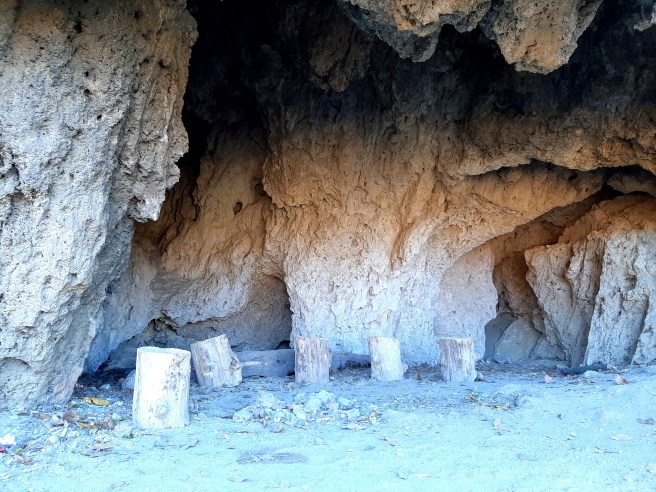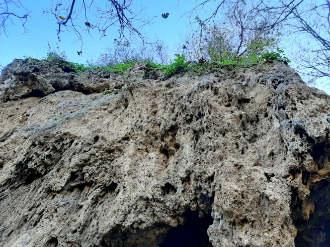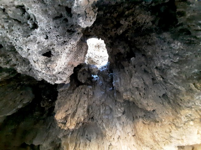 Най-интересното по пътя беше странна набраздена скала (поне мисля, че беше скала), наподобяваща пещера с дупка в средата на тавана. Интересната й форма вероятно се е получила под влиянието на дъждовната вода.