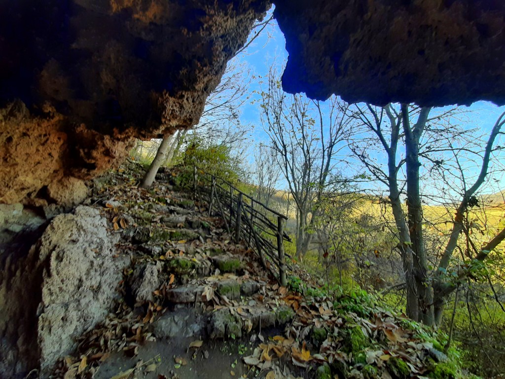 Малко преди нея и след това има стръмни и тесни участъци, така че ви препоръчвам да сте със стабилни обувки. Заради есенните листа, се пързаляше много. Но на най-стръмните пътеки са изградени дървени стълби с парапети, така че да е напълно безопасно.