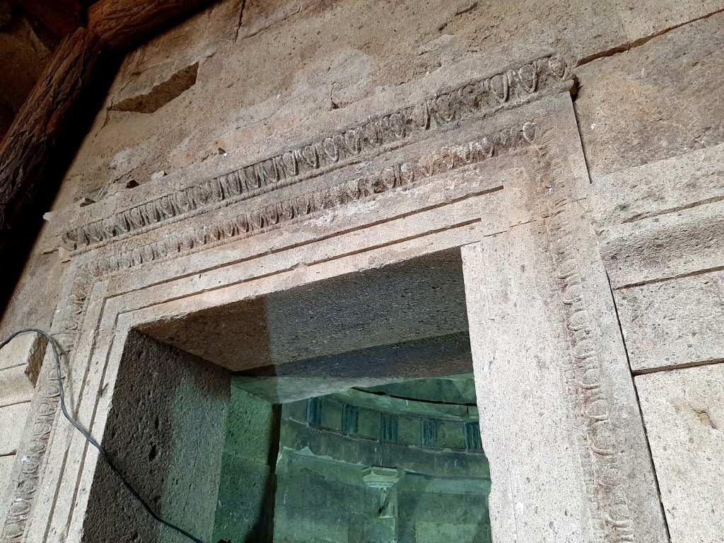 Вратата към основното помещение например е украсена с релеф на юнийска кима (вълна) по-голямата част, от която е в много добро състояние и днес. Изключително красиви са и полуколоните по стените във вътрешното помещение, високият 6 метра купол, както и цветният декоративен фриз, изпълнен в три цвята – синьо, черно и червено.