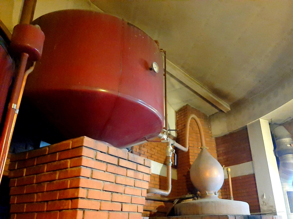 Турът най-напред мина през двора, където видяхме „могилата“ в комплекса – таванът на енотеката, която предстоеше да ни смае. Продължихме към избата с безброй много (поне на мен така ми се стори) съдове за производство на вино.