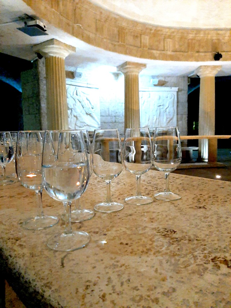 И така неусетно достигнахме до най-чудното място – енотеката. Почувствах се сякаш попадам в древен тракийски храм. Архитектурата, орнаментите, колоните – всичко толкова много наподобяваше забележителностите, от които тъкмо се връщахме. Там научих и че енотеката е зала, която освен че е оптимално климатизирана за съхранение на вино в бъчви и бутилки, в случая служи и за винени дегустации.
