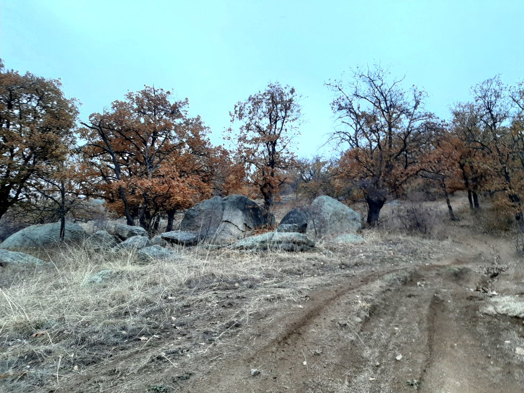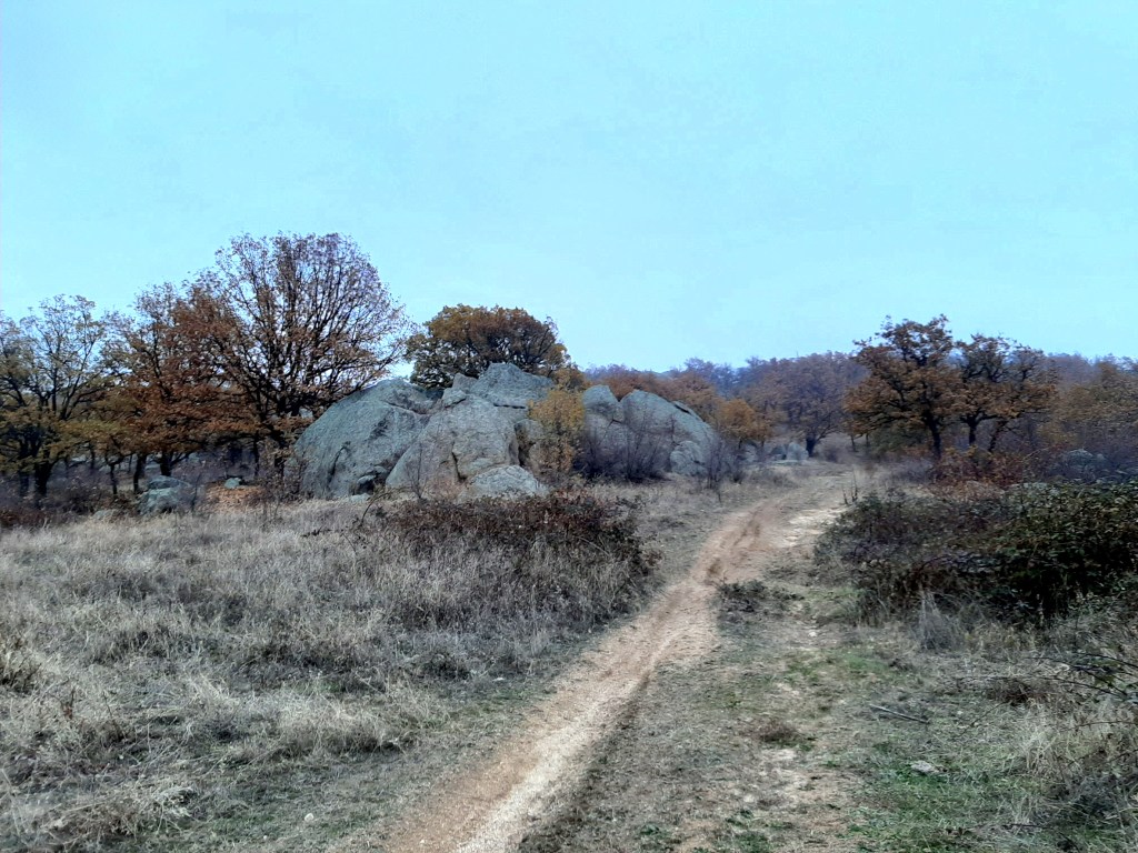 Скоро след като тази така оживена част остана зад гърбовете ни, пътеката започна да се издига постепенно нагоре. Имаше няколко по-стръмни участъка, но дори деца биха се справили. Вече беше настъпил късният следобед и в този мрачен зимен ден гората изглеждаше леко плашеща, но и доста вълшебна. Мъгла обливаше близките хълмове, а търсените от нас камъни се криеха някъде в необята.