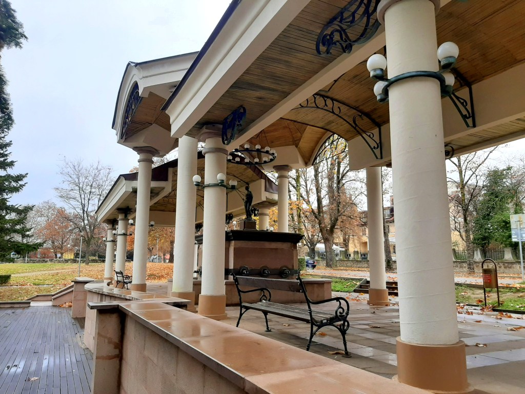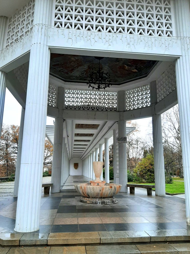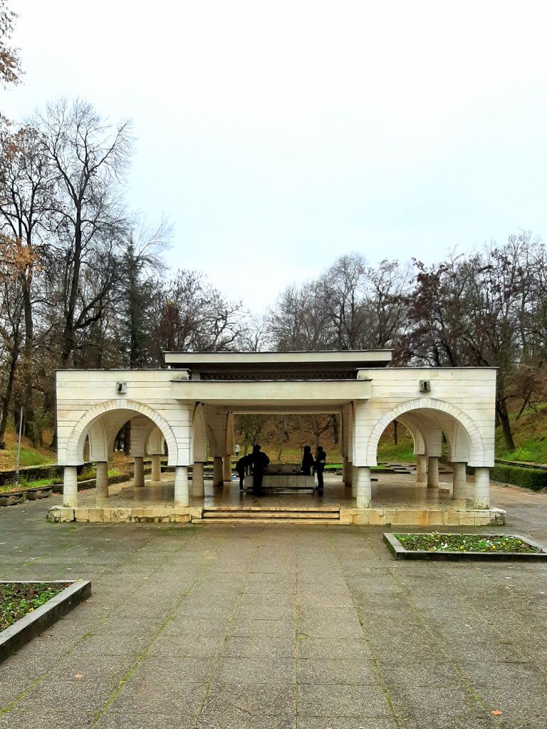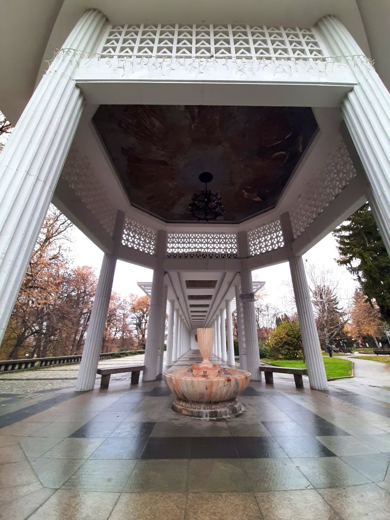 Вода от извора „Момина сълза“ можете да опитате и от чешмата под римската колонада. Колонадата е построена през 1960 г. и се захранва с минерална вода от най-вкусния минерален извор в града. 🙂 Върху свода й са изобразени осемте антични божества на здравето – Язо, Панацея, Телесфор, Асклепий, Хигия, Епионе, Мохайос и Подалериос, и са нарисувани основните кристали на минералната вода.