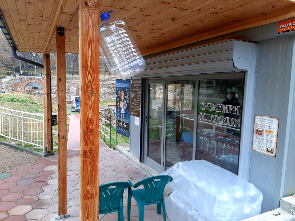 Празни бутилки за минерална вода можете да си купите от сувенирния магазин при Римските терми.