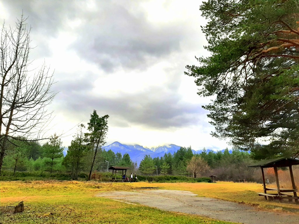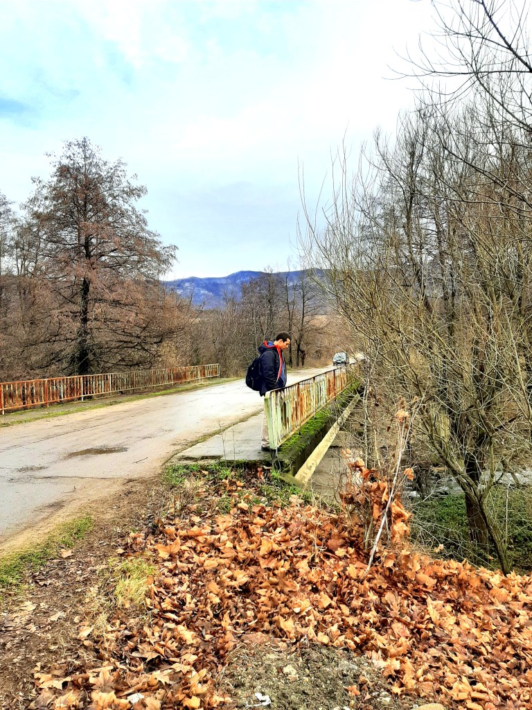 След отбивката до градината продължихме по Алеята с чинарите и до нас се разкри още по-приказна гледка – заснежените върхове на Стара планина. Повървяхме, докато те не се оказаха право срещу нас, а ние – на кръстопът. Вляво от нас се извиваше река Ботуня. Надникнахме над мостчето и поехме обратно към къщата, в която бяхме отседнали, защото все пак предстоеше празнуване.