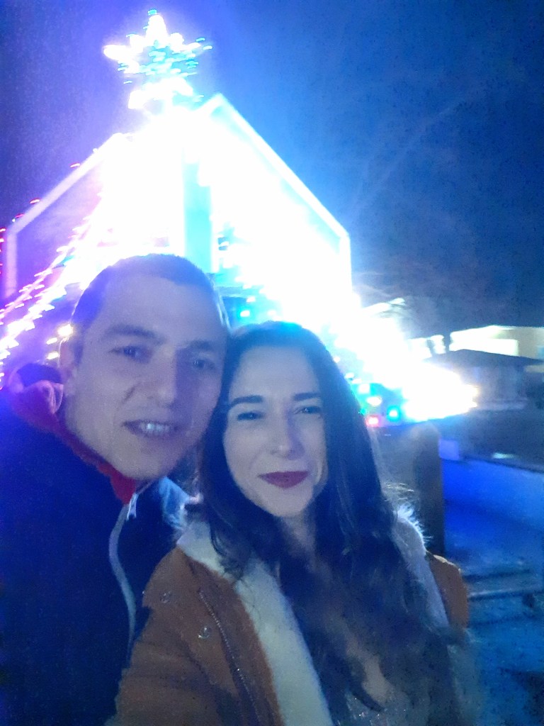 Снимките ми от зарята не са особено добри, тъй като гледах към небето, докато снимах. Компенсирам с кадър от светеща елха..