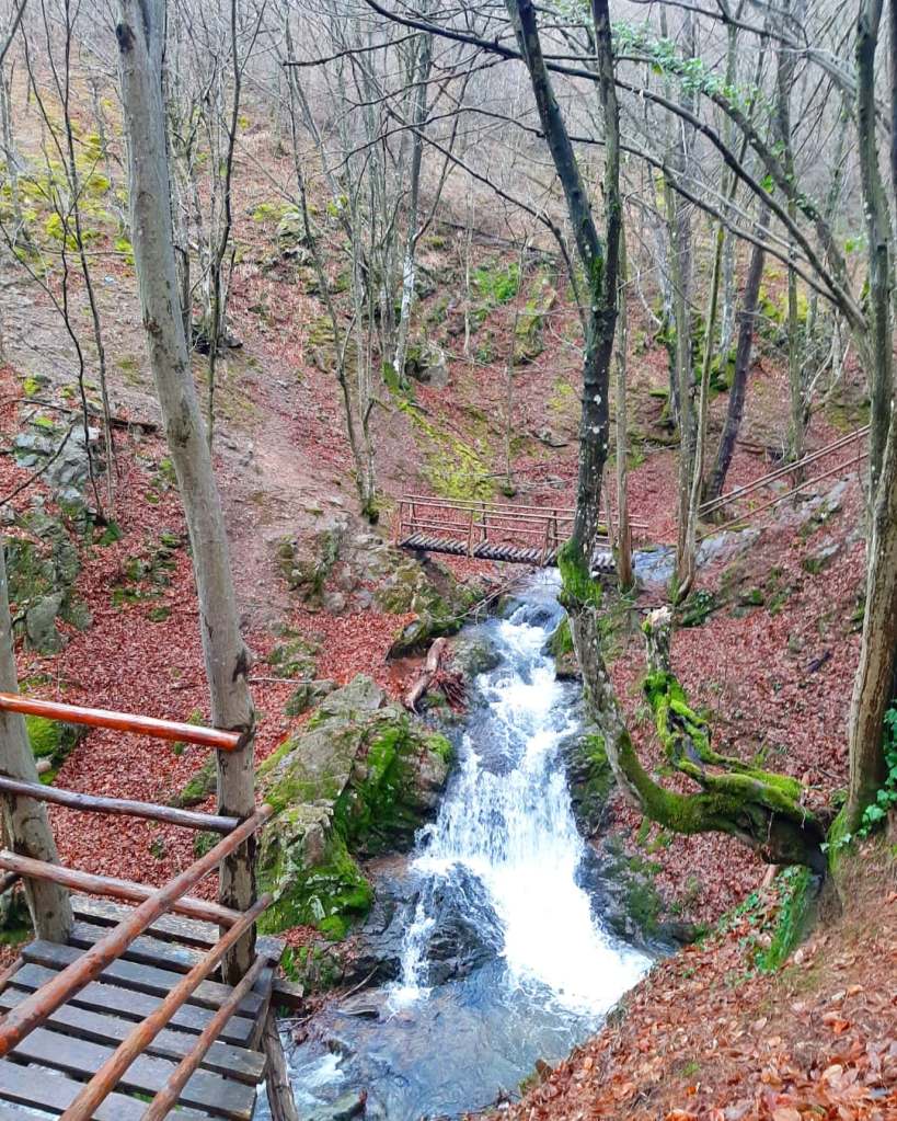 Над него се простира малък мост (има дупка, така че внимавайте, когато преминавате). Оттам води началото си и един от маршрутите към връх Тодорини кукли в Стара планина. Ние не се качихме толкова далече, но и гледката след едва няколко крачки определено си струваше. Пред нас в низината се показаха оранжавеещите покриви на къщурките от Вършец.