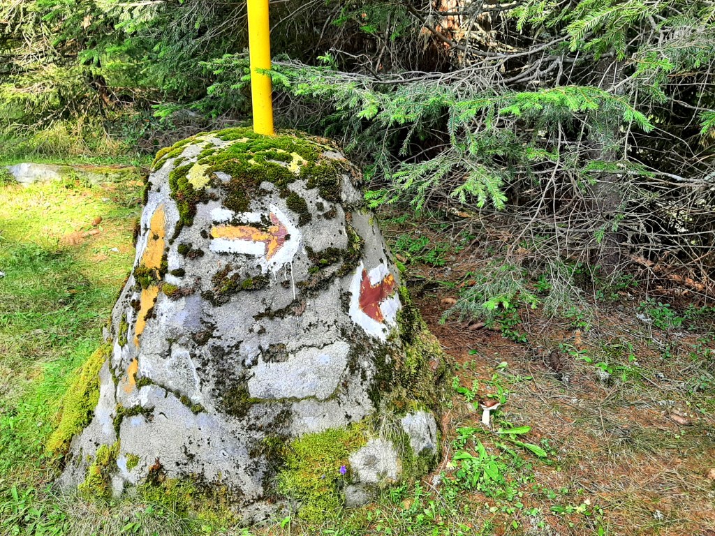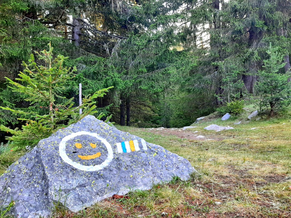 Край хижа Беговица закусихме, наляхме още вода и продължихме нагоре. Поехме по пътеката, обозначена с този усмихнат камък, следвайки отново синята маркировка.