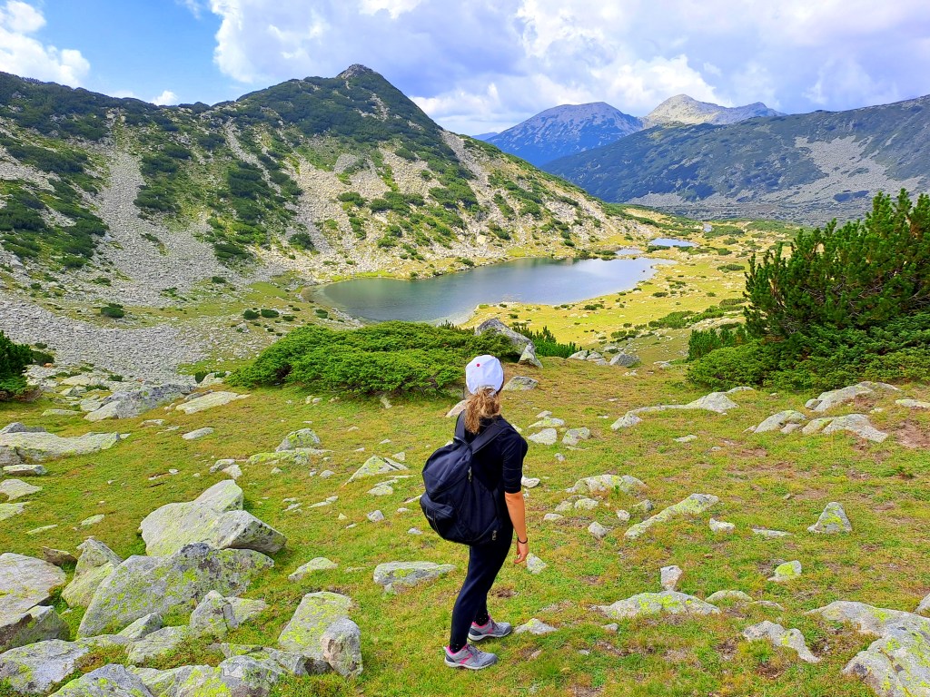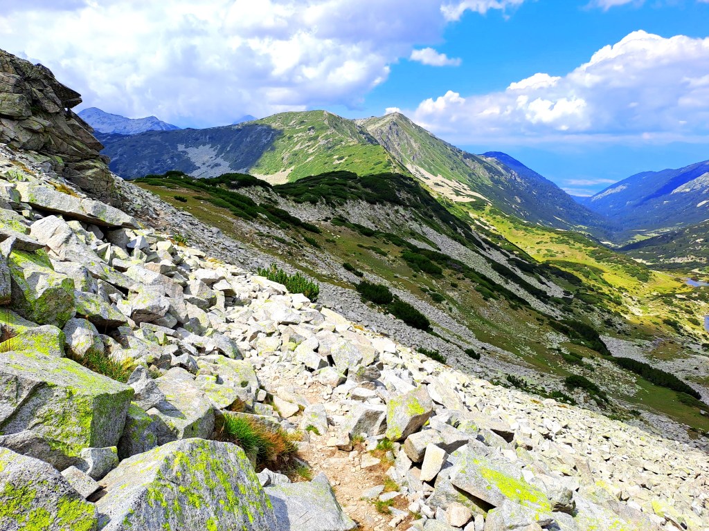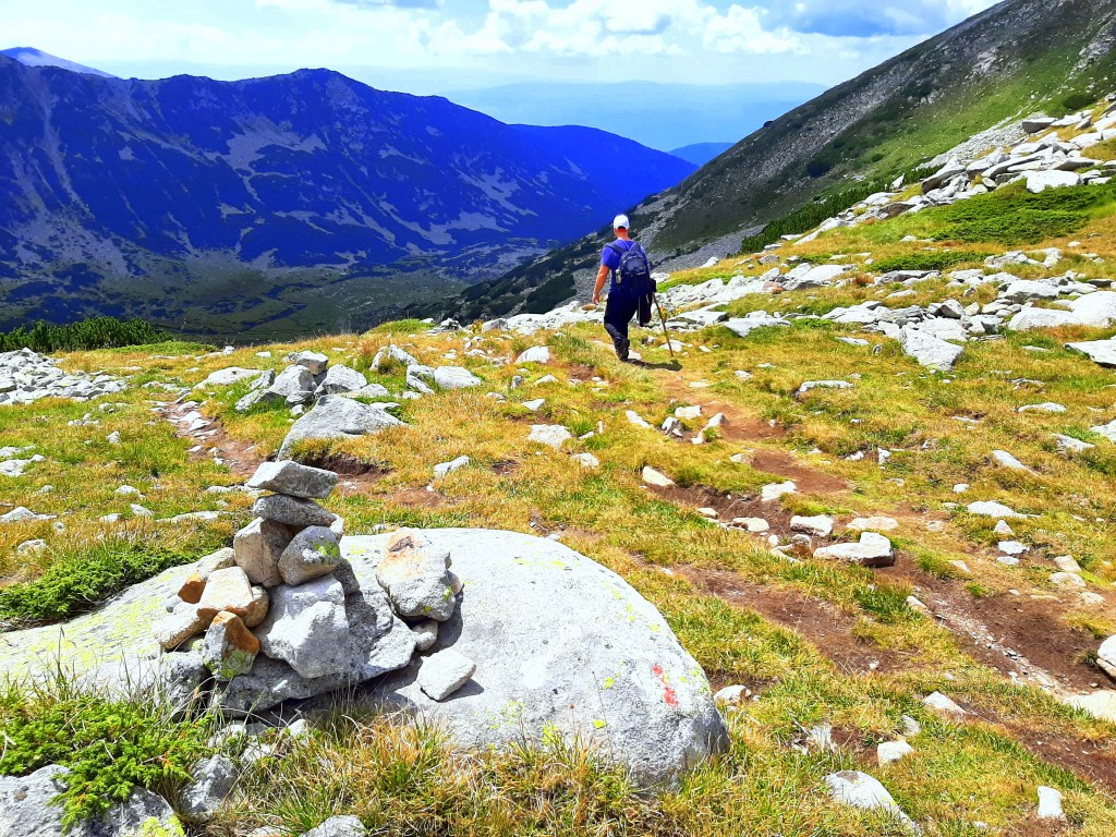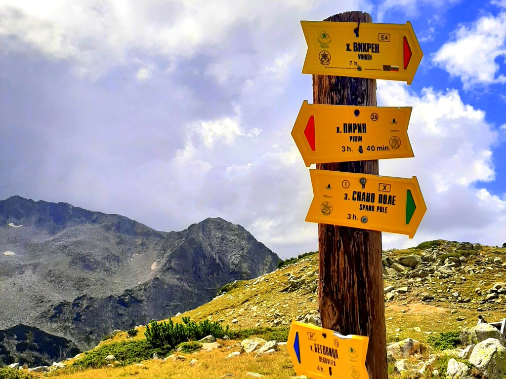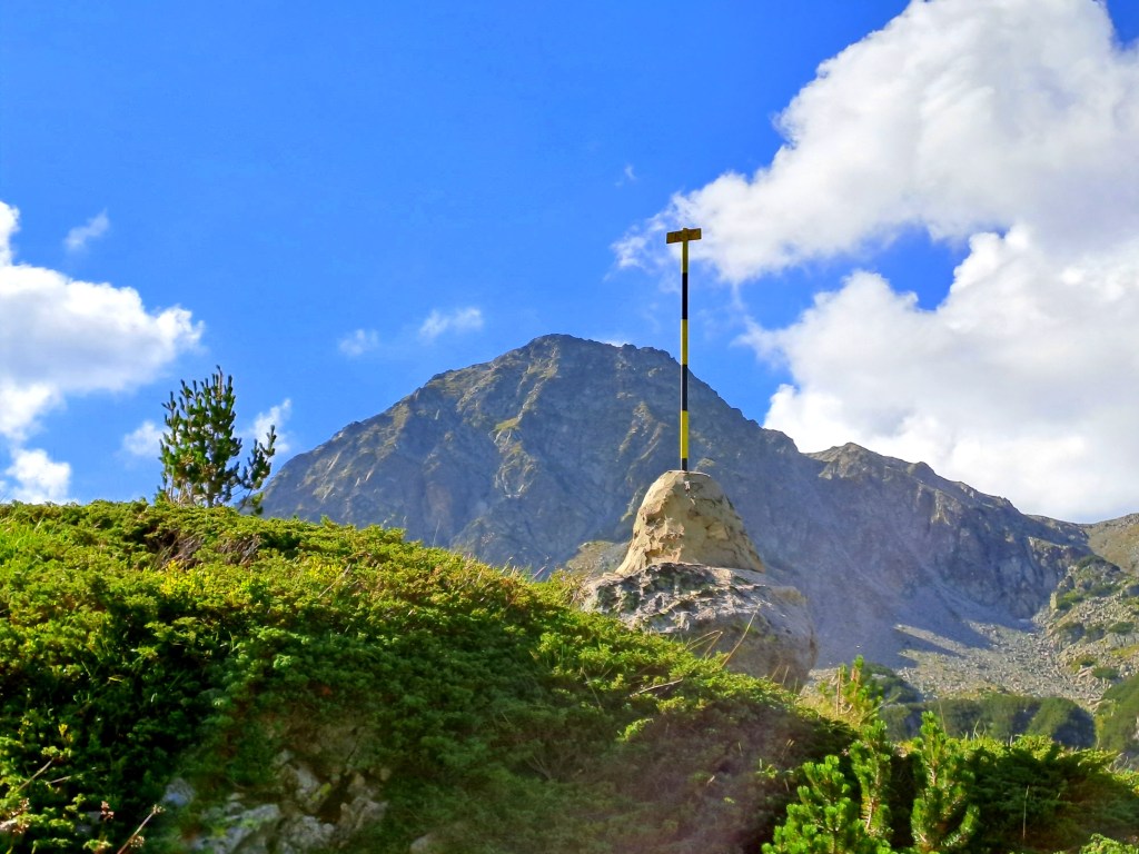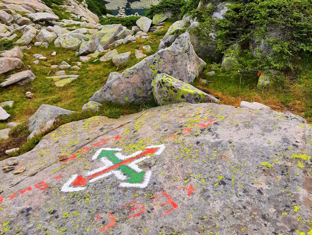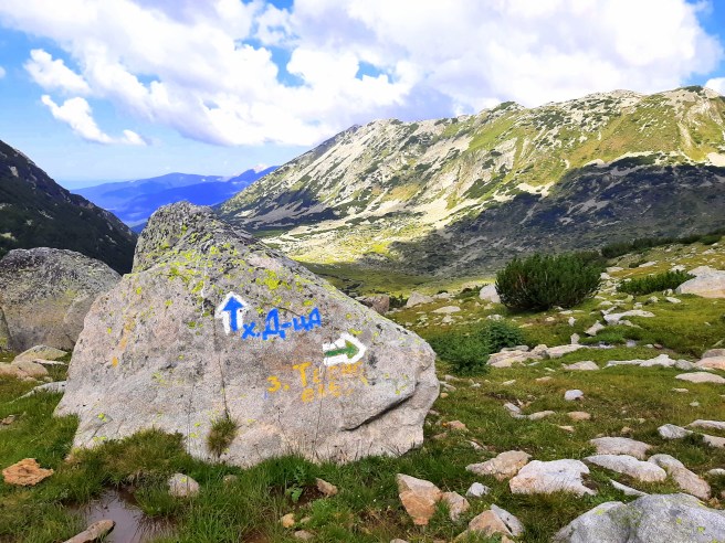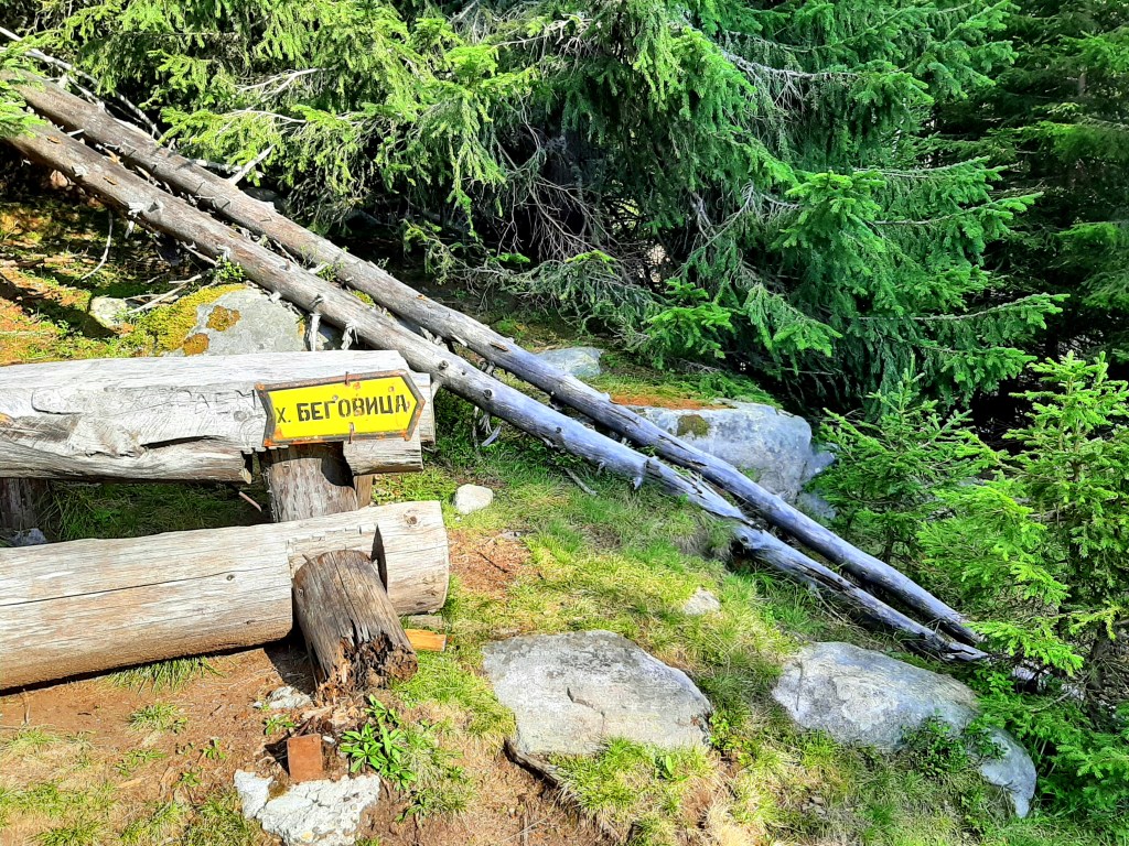 Докато се радвахме на страхотните гледки – включващи още доста езера, неусетно стигнахме до разклон, обозначен с камък. Маркировката върху него сочеше да преминем към зелената маркировка, отвеждаща към хижа Беговица. Ако бяхме продължили по червената, щяхме да се озовем пред хижа Вихрен.