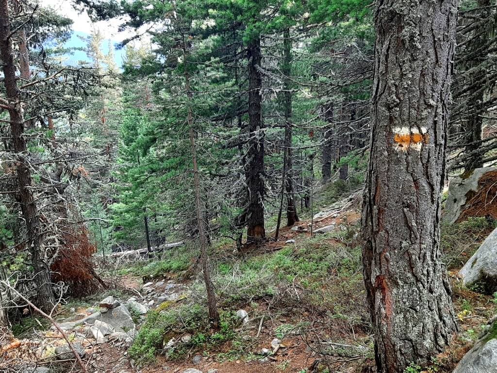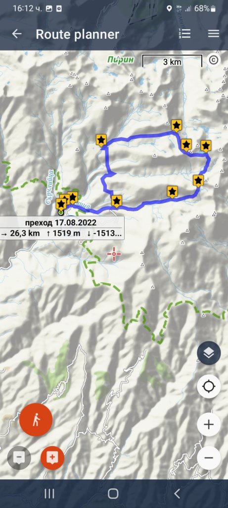 Началният план беше да се върнем по същия път – или поне така стояха нещата в моята глава. Мъжът ми обаче с интерес разучаваше приложението Locus Map и вече ни беше измислил друг маршрут. Табелите и маркировките по него бяха много объркващи, но с помощта на картата и вътрешния си нюх, успяхме да се оправим. Поехме по маршрута към заслон Спано поле. Според табелата край езерото той трябва да е маркиран в зелено, припокривайки се в началото с червения към х. Вихрен. Е, от Тевното езеро в тази посока маркировката бе единствено червена.