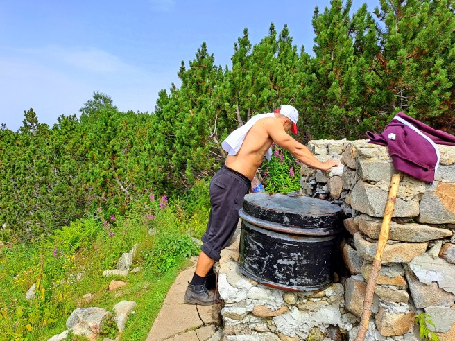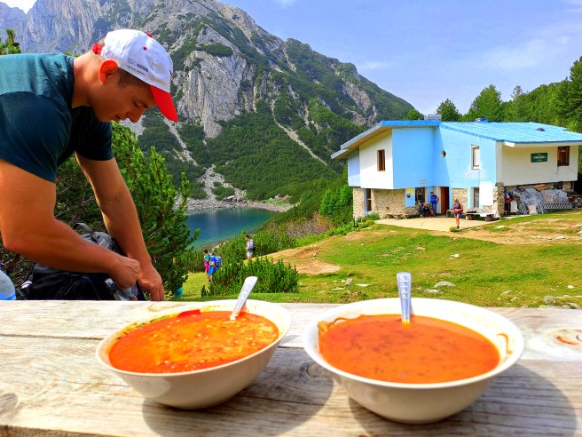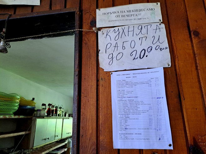 Да, Синаница е и синята хижа, очароваща с уют и с чистота – поне в общите части, които видяхме. Изключително чиста бе даже и външната тоалетна – важен детайл за толкова оживен край на планината – по пътя срещнахме много хора. Предполагам, че през другите месеци от годината (различни от август 😊 ) би било по-спокойно. Вкусна бе и храната, която опитахме – боб и шкембе (класика!).