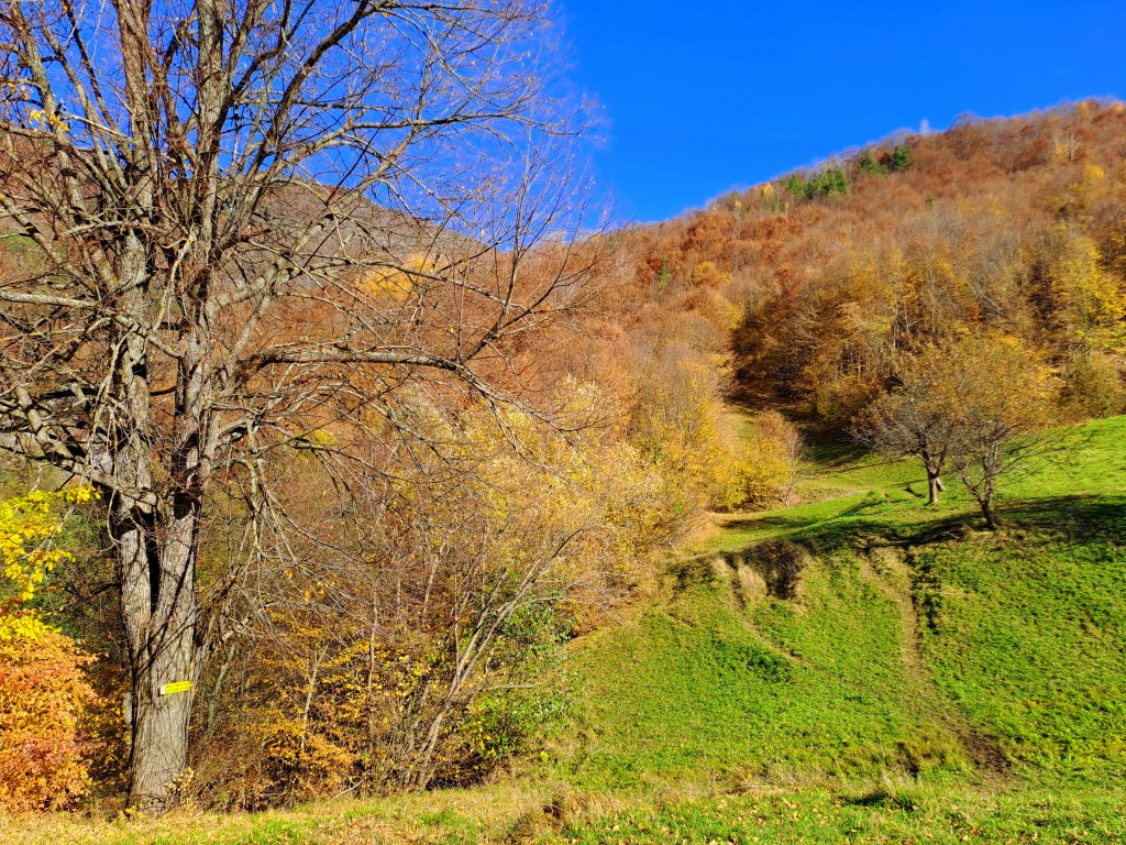 Макар и екопътеката да е много кратка – минава се за 15-20 минути, началото й не е толкова лесно за откриване. Ние поехме право напред след табелите, преминахме електропастир за пасящите наблизо крави и свихме вляво по протежението на пътеката. Табели към крепост Калето обаче нямаше. Те сочеха към местност Трошачката. Освен това простиращата се пред нас пътека бе твърде полегата, а ние очаквахме бързо изкачване.