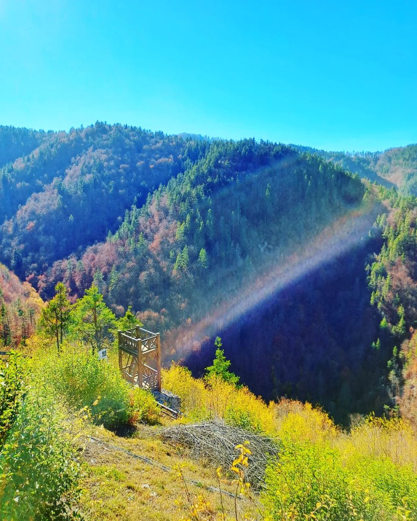 Не след дълго бяхме на по-равна и покрита с растителност земя. Изкачихме добре обособено стълбище и се озовахме на най-високата от няколкото панорамни площадки в района. Зърнахме сгушеното сред родопските хълмове село Кошница в цялата му прелест. 💚 И не мръднахме още поне 20 минути.