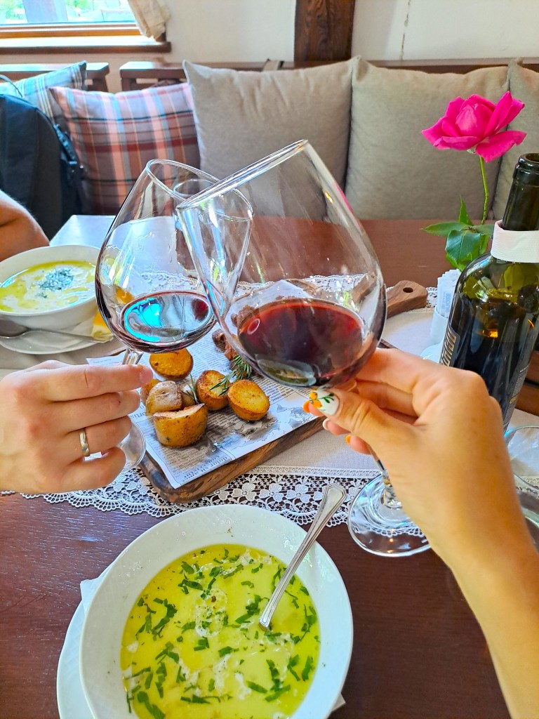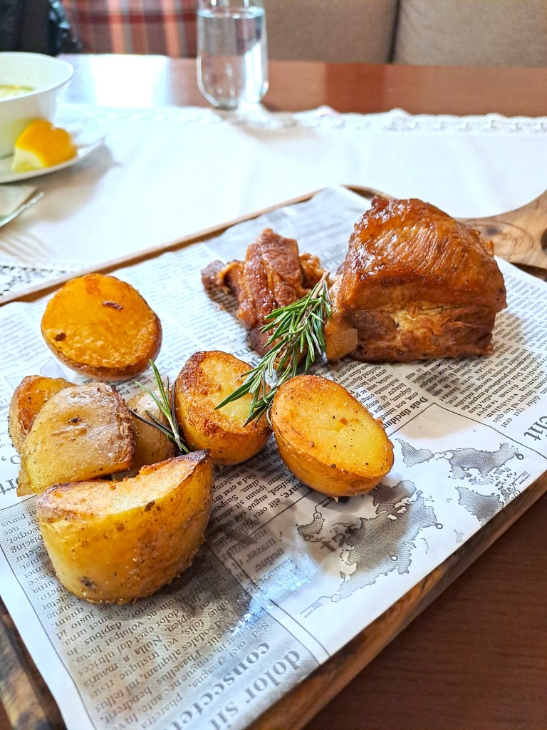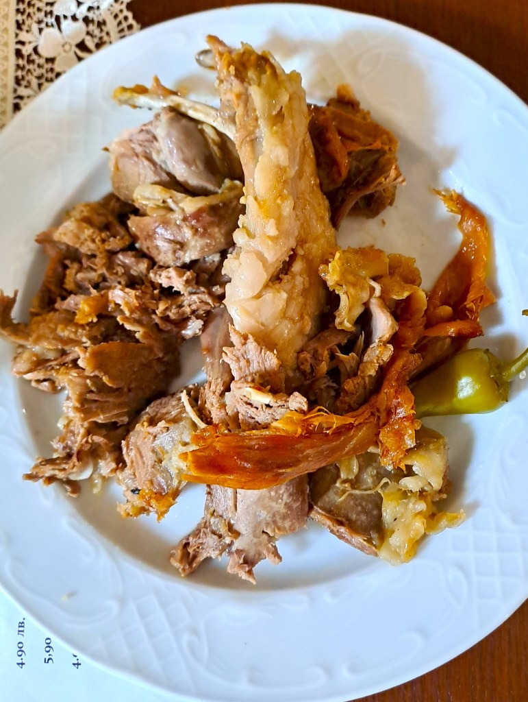 В ресторанта най-много ме впечатли агнешкото чеверме, поднесено под съпровода на гайда и родопски народни песни, макар и ние да пропуснахме самото поднасяне. Оказа се, че това е последното чеверме за сезона, приготвяно всяка лятна събота, докогато времето позволява през септември. Убедена съм, че да си хапваш вкусна храна сред природата под звуците на гайда (както се случва през лятото), би било незабравимо изживяване, но и на топло и сухо в ресторанта в този хладен септемврийски ден също си се насладихме подобаващо на агънцето.